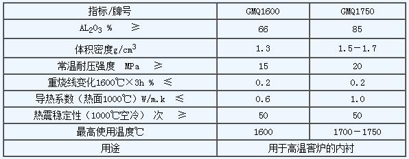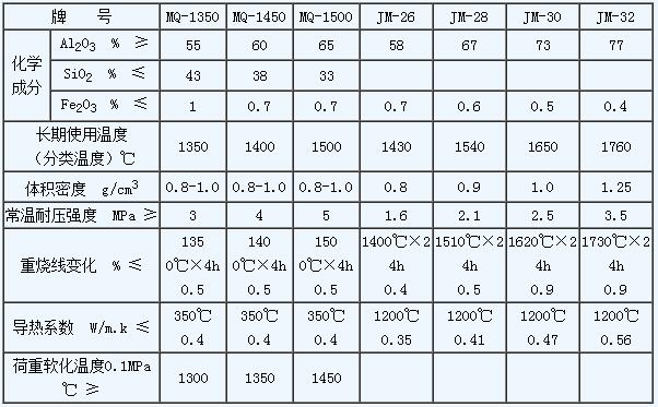 各種牌號輕質剛玉莫來石磚性能對比