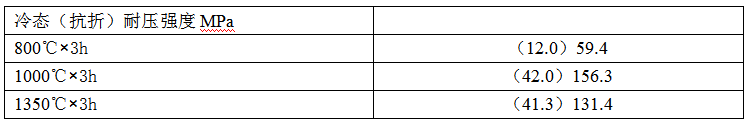 為了探索莫來石在復(fù)合膠結(jié)劑中形成的溫度,我們作了如下試驗,對1#試樣的生坯分別以800℃×3h,1000℃×3h和1350℃×3h燒后測其冷態(tài)強度,結(jié)果如下: