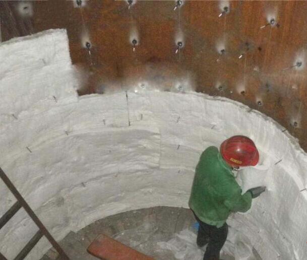 減少熱能散失主要通過覆蓋保溫材料來實現,保溫材料的選擇上以輕薄的纖維氈、纖維毯為主。施工方法為按照需要,將纖維毯剪切成特定尺寸,與爐體之間使用耐火泥粘貼,也可以使用錨固鉤固定,如圖2所示。課題的研究對象為加熱爐,爐體在設計上配置了各種耐火材料,其目的是使其具有隔熱、保溫的功能,不需要額外增加保溫材料。